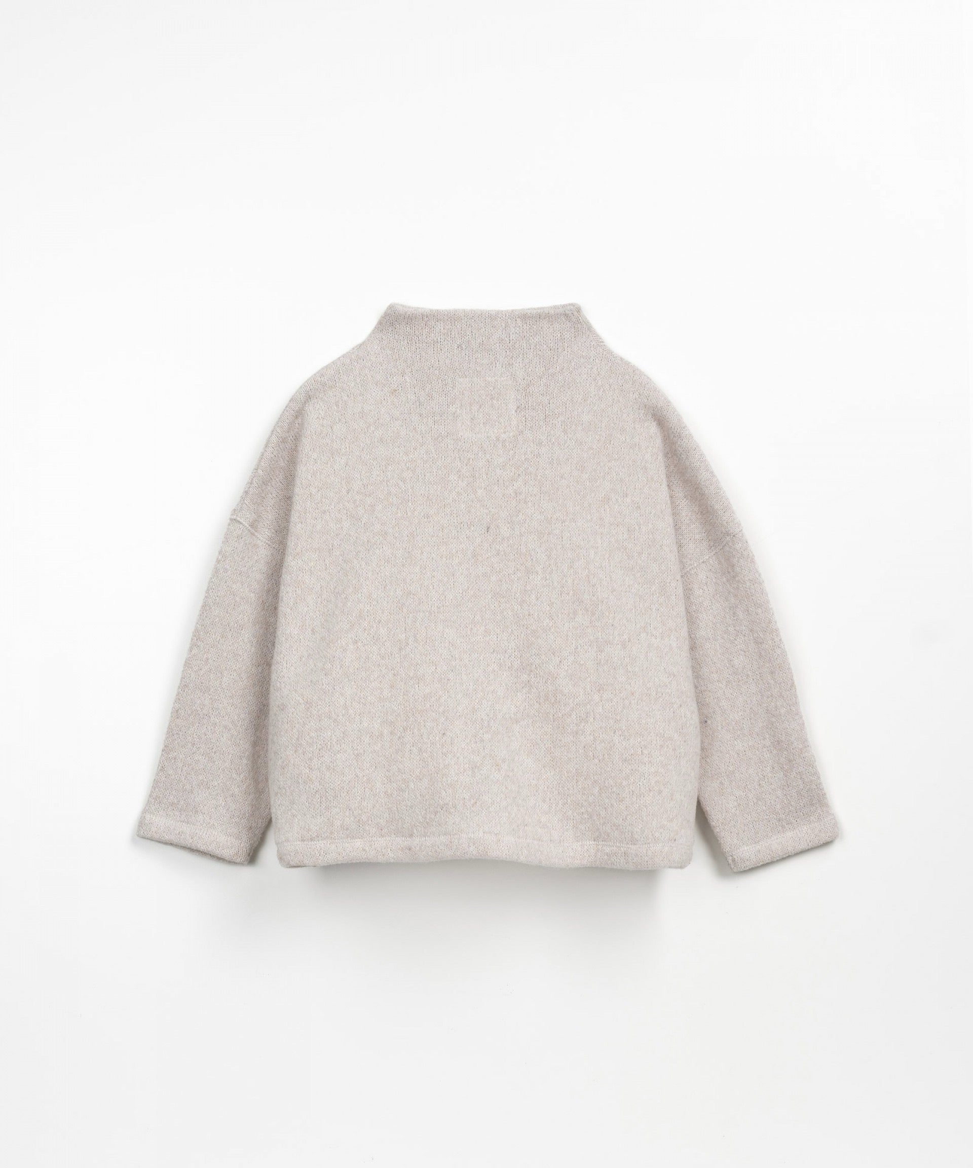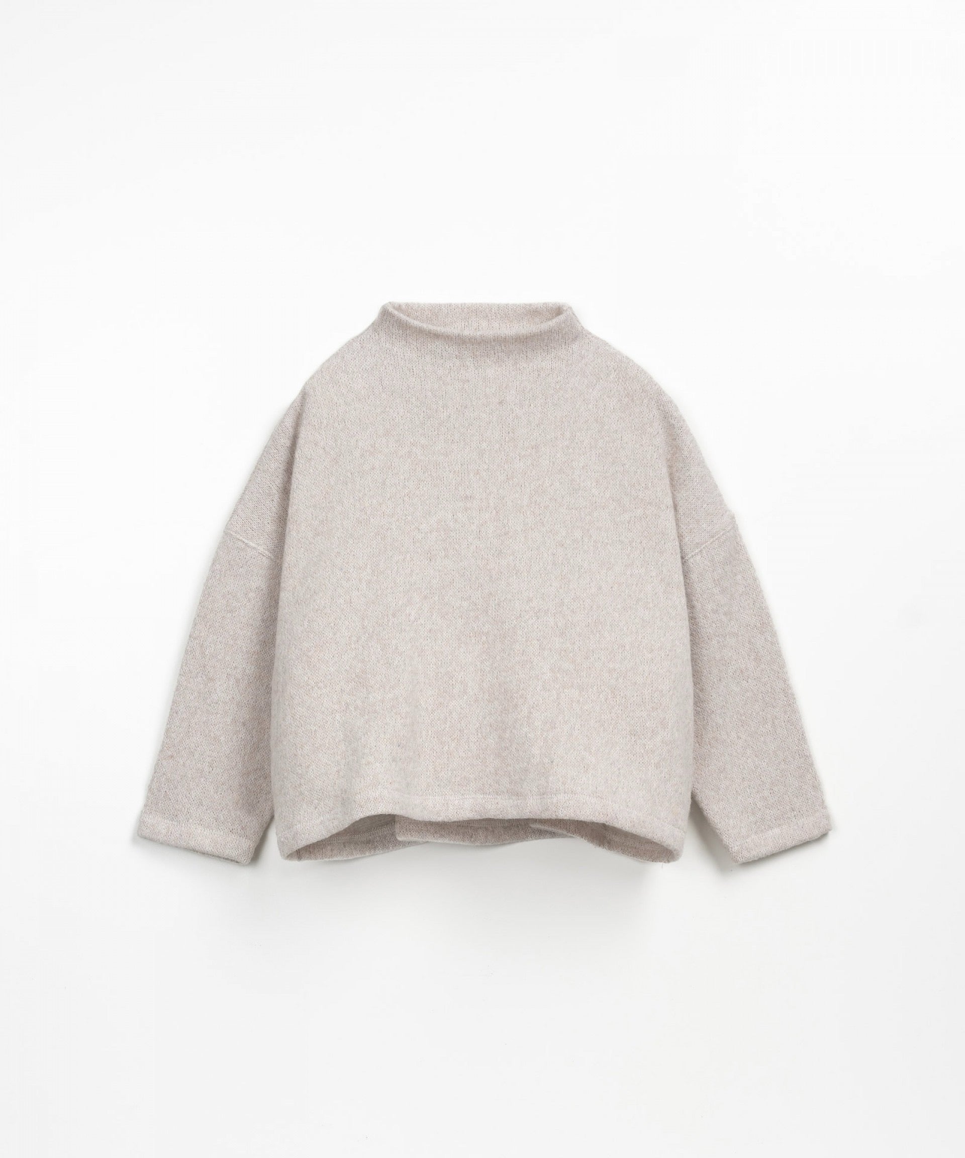 This jersey sweater is made from a mixture of recycled fibers, So-So color, and contains 31% of our Re(Play) recycled yarn. It's a model with inner carding, mock neck and dropped shoulders.