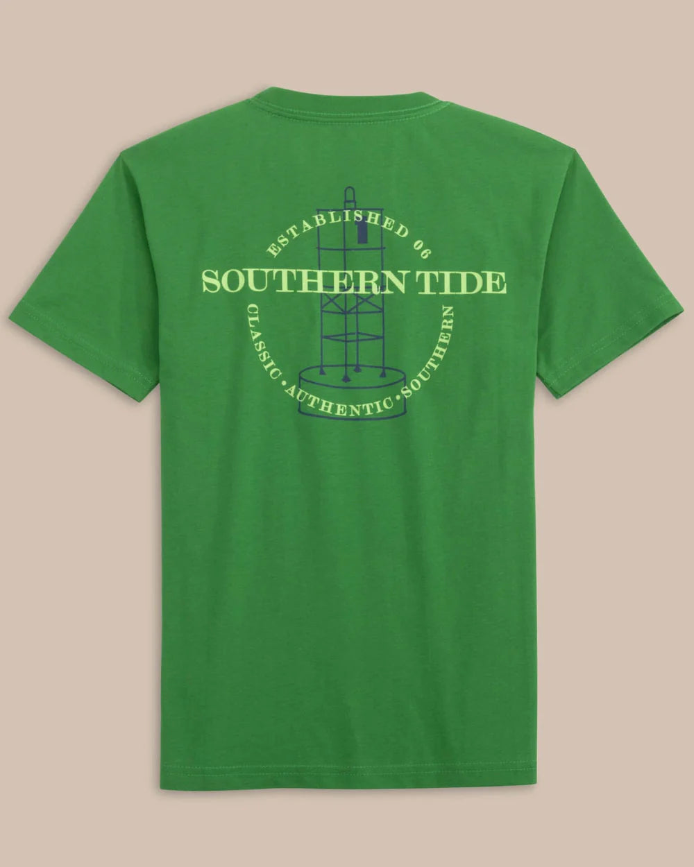 Mark their summer style with the chest and back buoys on this boldly colored t-shirt. Flexible fabric and a rib collar construct this casual but considered short-sleeve shirt.