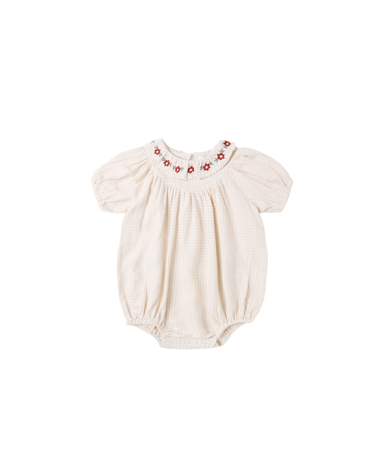 Featuring our 'petal gingham' all over print, with an embroidered floral collar.