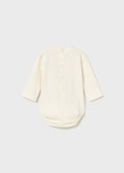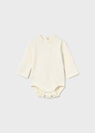 Long-sleeved bodysuit for newborns. Mock neck. Snap-button fastening at the back. Snap buttons at the crotch for easy dressing. Decorative details: embroidery.