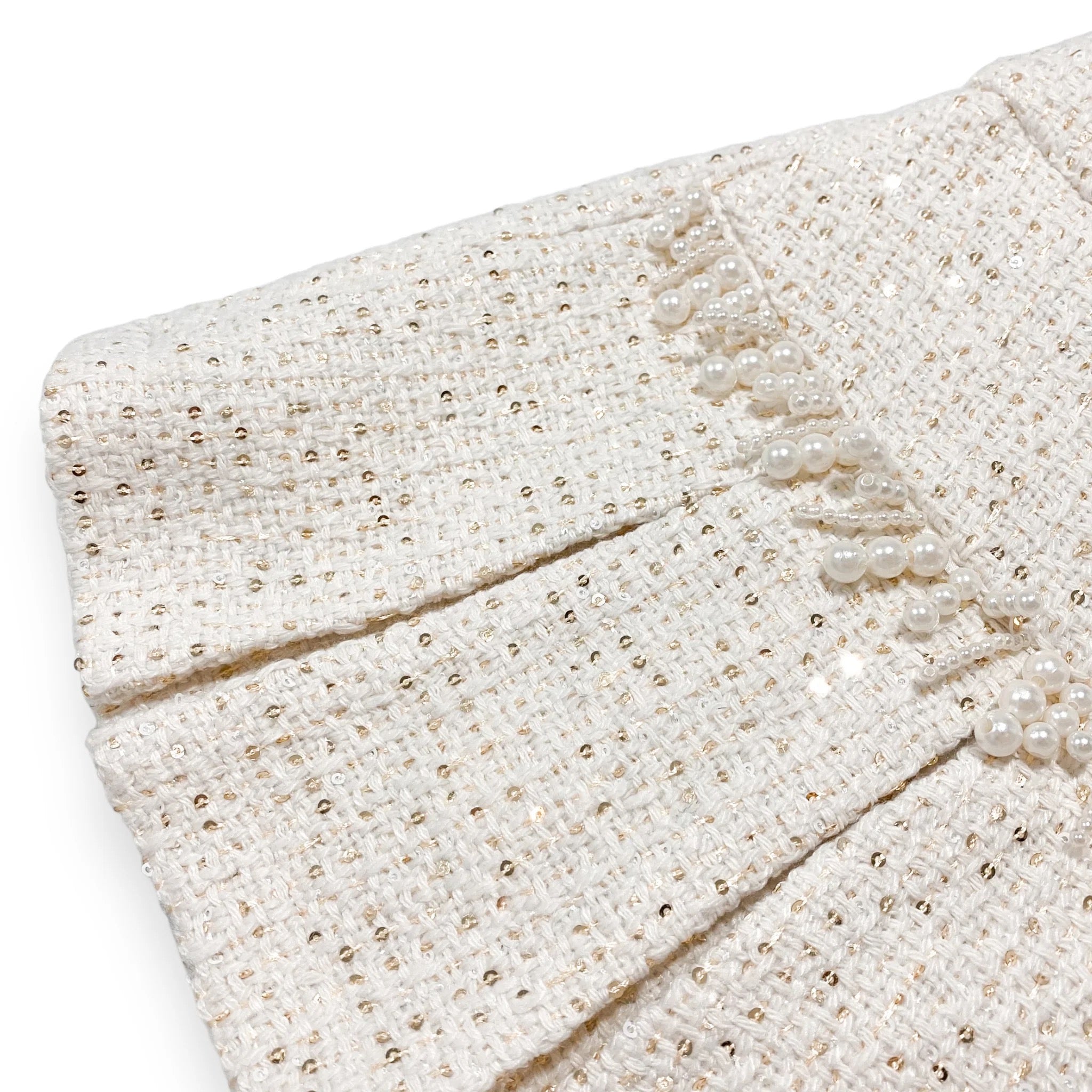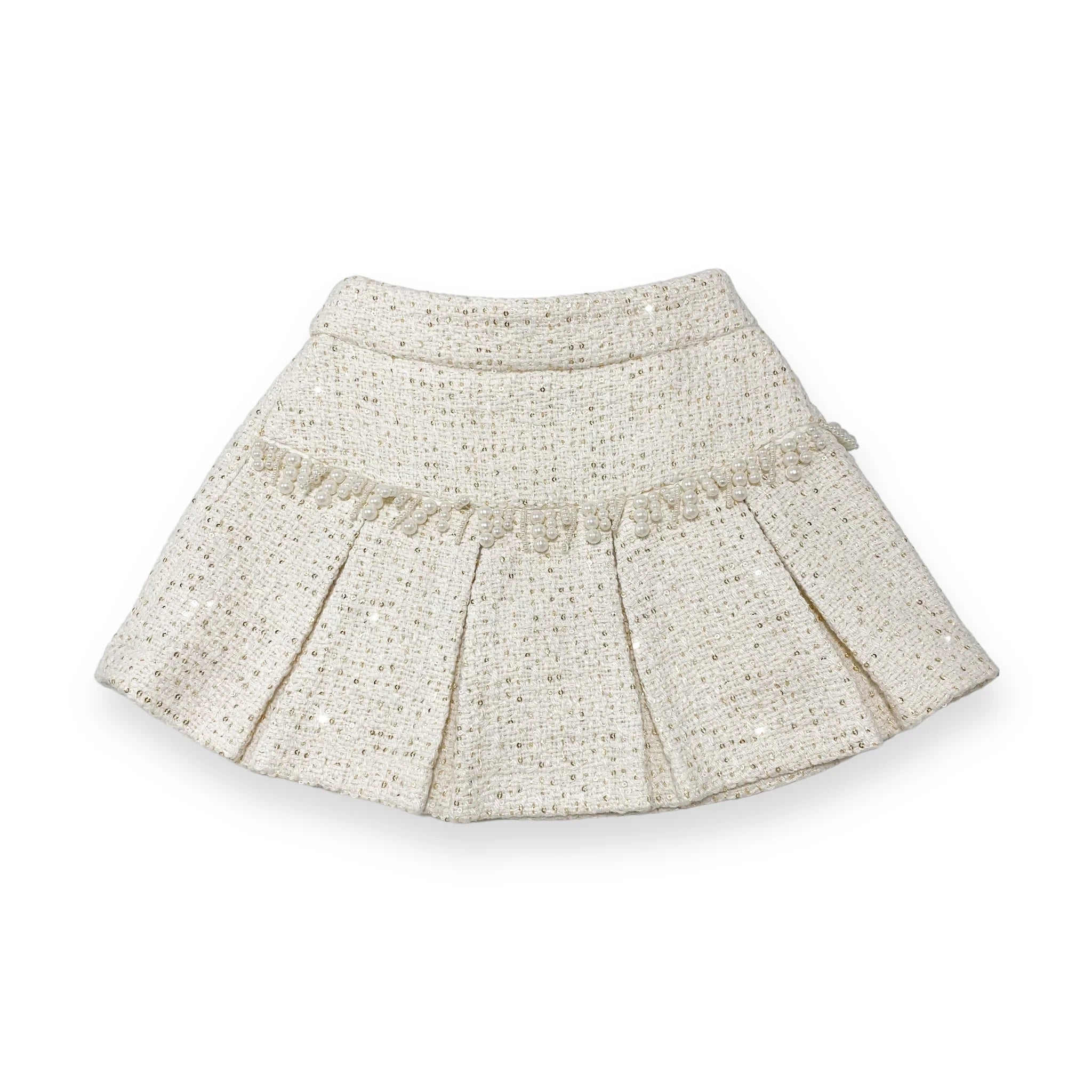This elegant and classic tweed skirt features pearl trim along the front and a pleated design. The best part? The skirt has mini shorts underneath to keep your little girl comfortable all day! A matching Gracie tweed jacket is available separately to complete the ensemble.