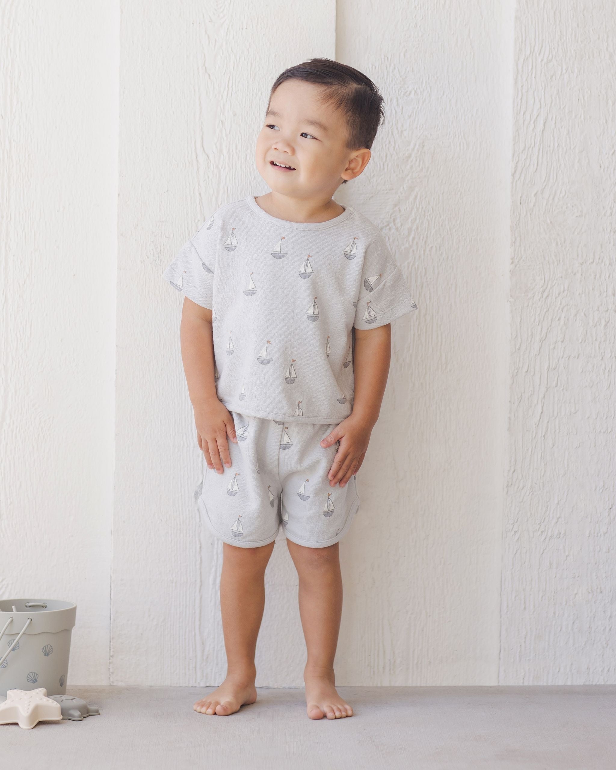 Featuring our 'sailboats' print on our 'sky' hue. Set sail for summer adventures in this cool style.