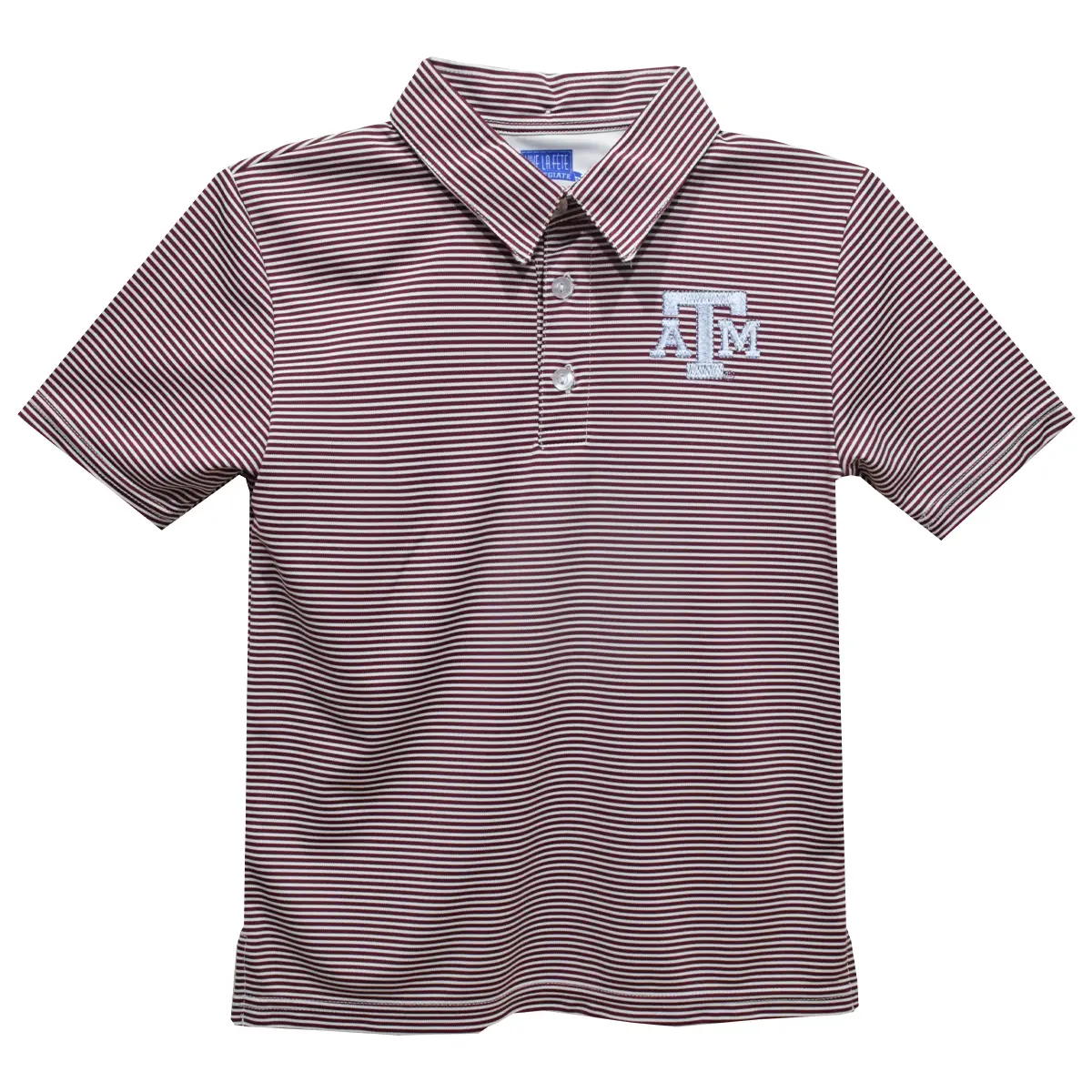 Texas AM Aggies Embroidered Maroon Stripes Short Sleeve Polo