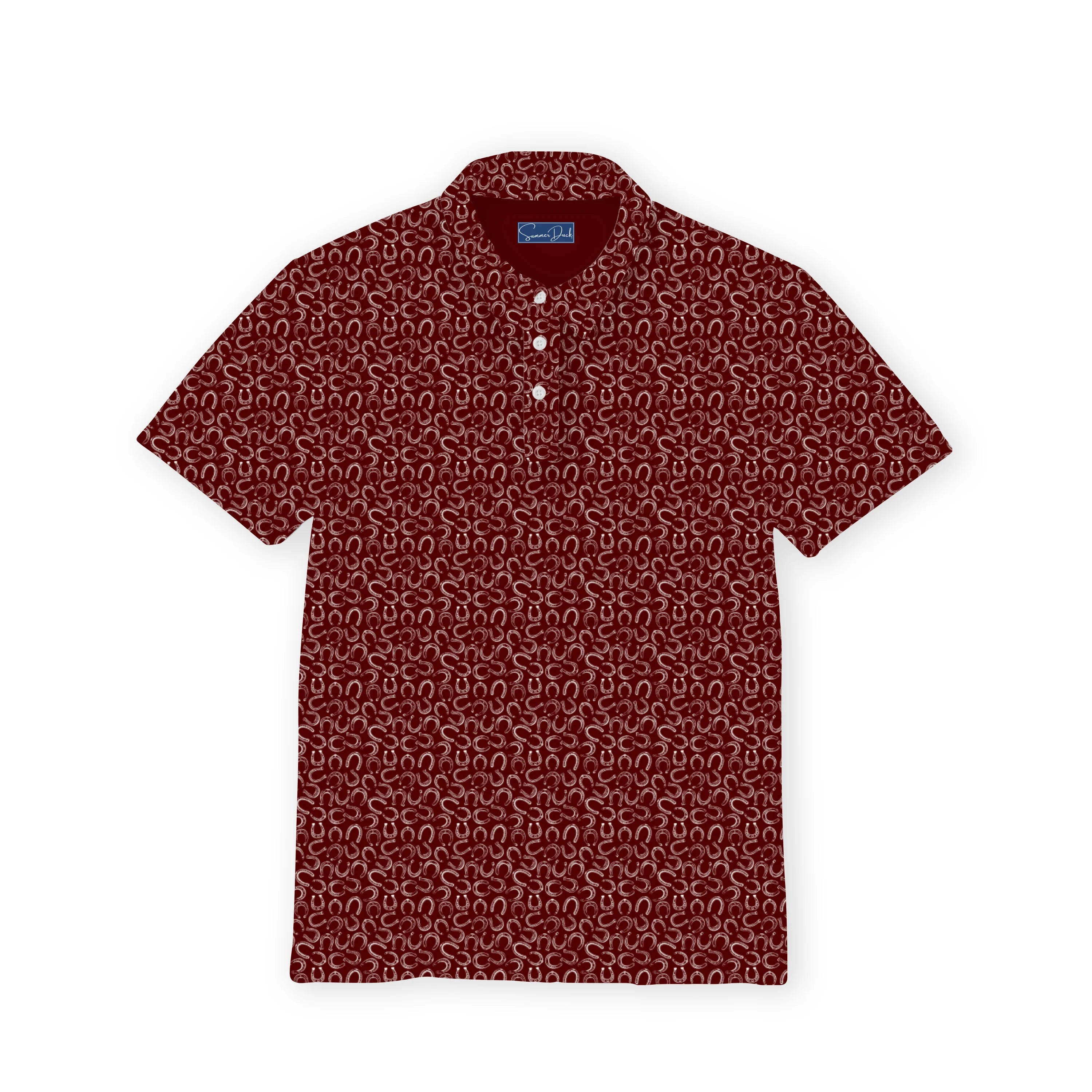 Good luck looks even better when it's shared — meet The Little Station Polo! Featuring the same deep maroon base with white horseshoe pattern as the adult version, this polo lets kids match in style with mom and dad. Made with lightweight, breathable fabric, it keeps little ones cool, comfortable, and ready for any adventure.