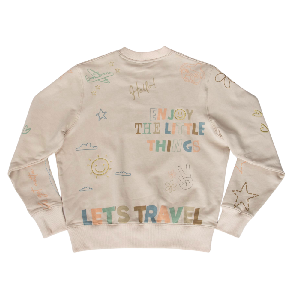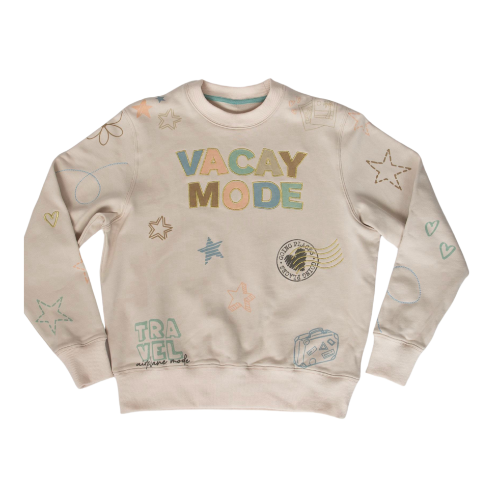 Get cozy with the Vacay Mode Sweatshirt in Almond! This sweatshirt is your perfect travel companion, combining comfort and style. Say goodbye to bulky layers and hello to ultimate coziness. Ideal for lounging, napping, or long flights (and everything in between). One piece, endless possibilities! Pair with our Travel Buddy infant sweatshirt onesie and kid's sweatshirt