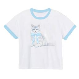 Blue Gingham Bow Kitty White Ringer Boxy