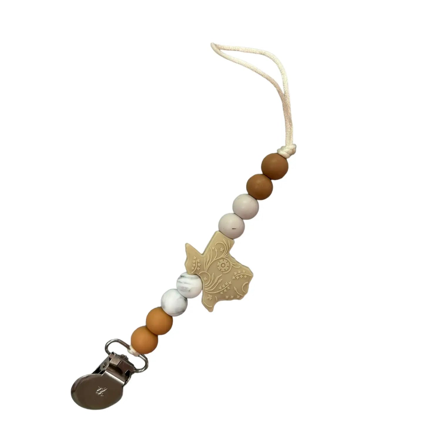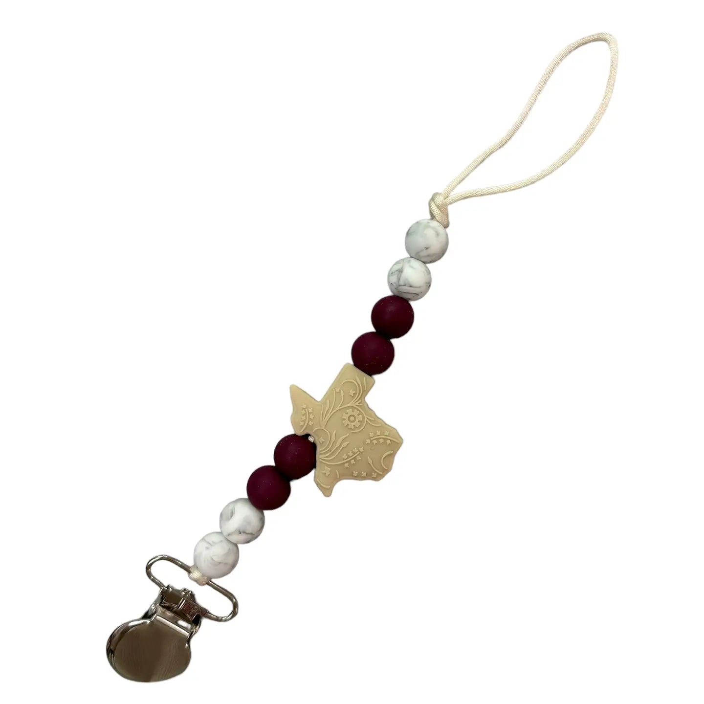 Our clips are made with BPA free silicone and select styles also contain all natural beech wood to provide variant textures for baby teething needs. Our clips are designed to hold up to a sippy cup or snack cup.
