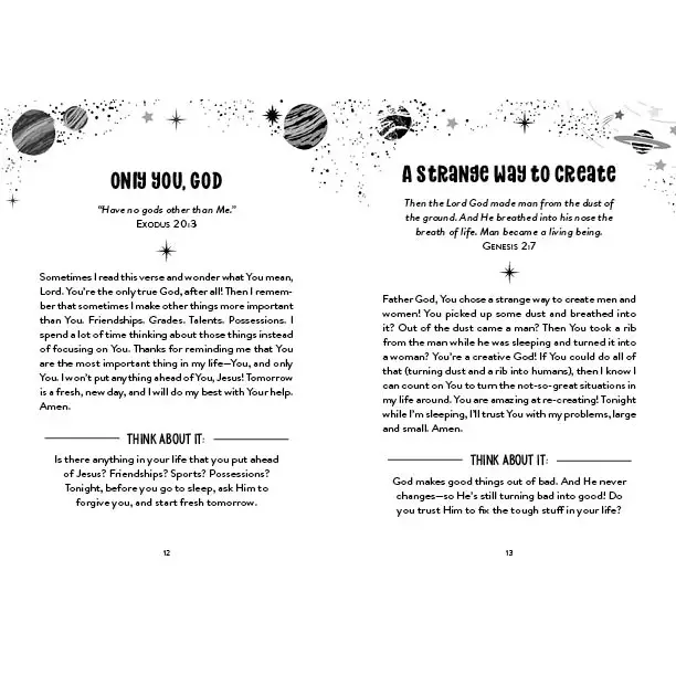The 8-to-12-year-old guys in your life will be encouraged to take a few moments of their day to pause, reflect, and renew their spirits with these 3-minute bedtime prayers.