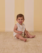 Our Beau Romper is the perfect summer outfit for your little one. This romper features a button placket on the chest and bottom snaps for easy changing.