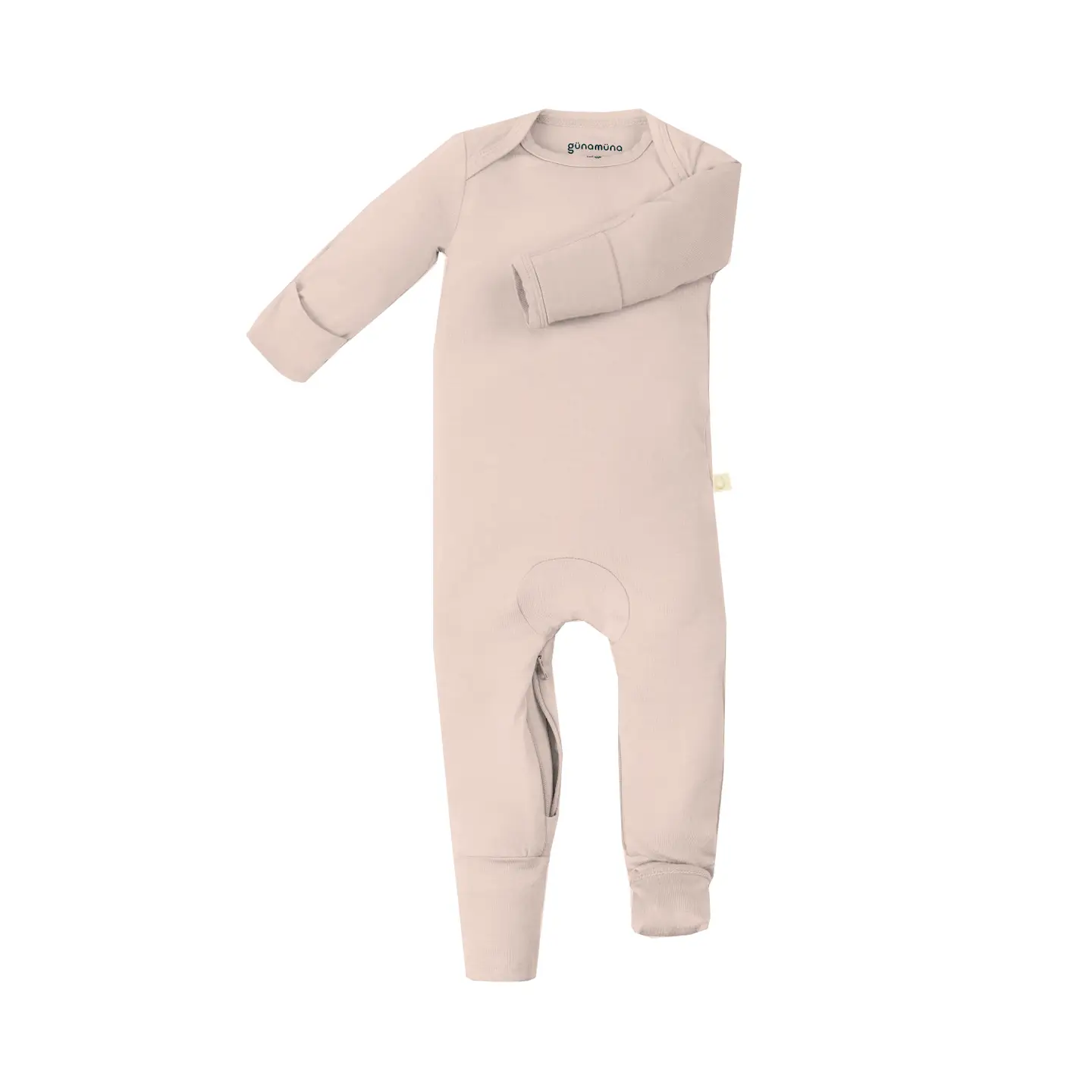 Convertible Pajama for babies - a versatile two-in-one solution, with or without footies. Made from silky soft bamboo rayon, this pajama ensures baby stays covered and cozy while making diaper changes a breeze with our exclusive DIAPER-ZiP®. Day or night, number one or number two, changes are effortless. Simply flip the footie up when your little one wants to walk. Featuring built-in optional hand mittens to prevent scratching and provide added warmth, a lap shoulder neckline for easy on and off, and only one zipper for optimal comfort, this pajama is designed for both convenience and comfort.