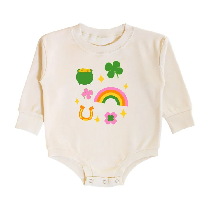 The Lucky Doodle St. Patrick's Day Long Sleeve Romper is a fun and festive romper for babies celebrating St. Patrick's Day!