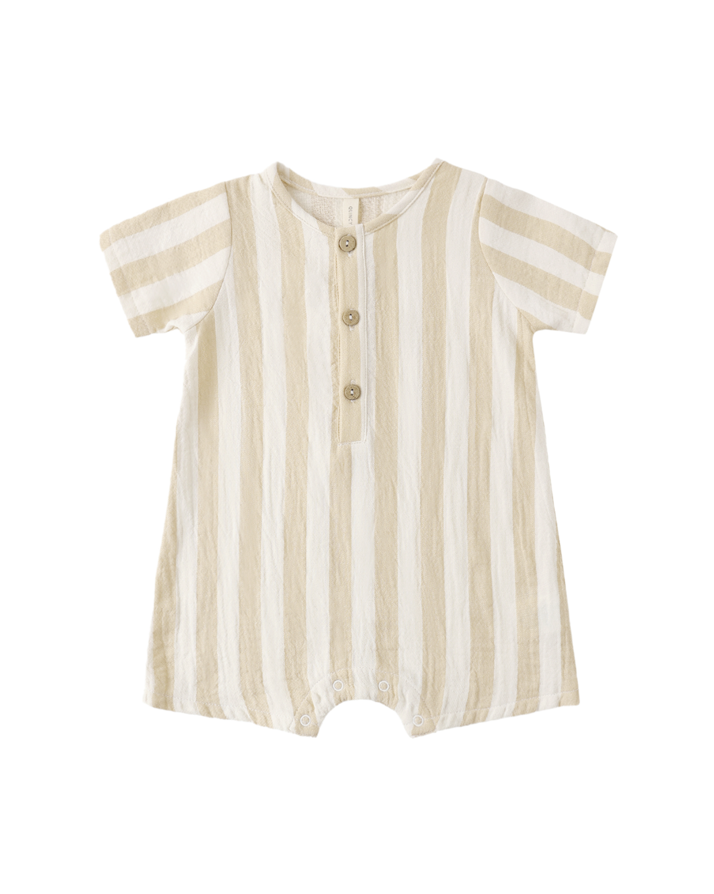 Adorable one-piece romper perfect for warm weather adventures! This short-sleeve woven style features a cheerful summer stripe pattern that's as fun as your little one. Soft, breathable fabric keeps baby comfortable all day long, while the relaxed fit allows plenty of room to play, crawl, and explore. Easy snap closures make diaper changes a breeze. An effortless go-to piece for sunny days, casual outings, or cozy playdates.
