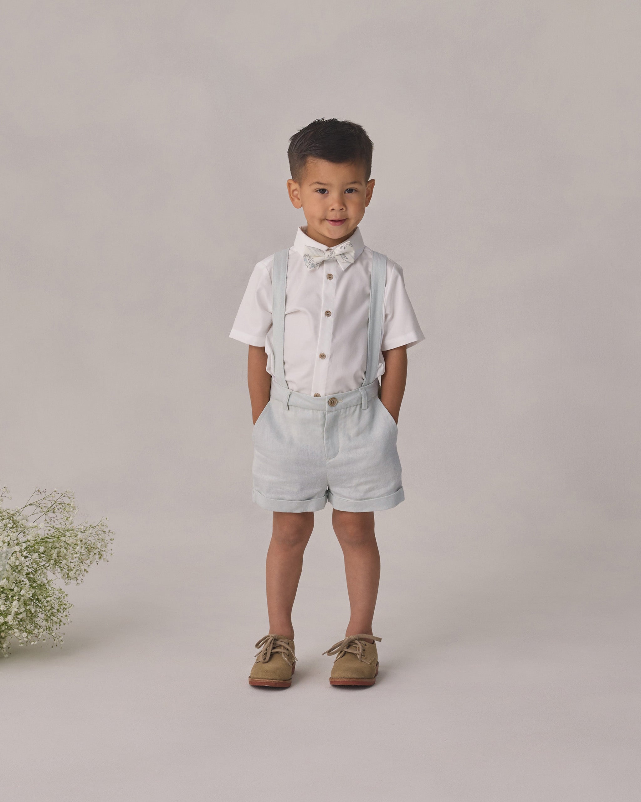 Elevate your everyday style with these charming suspender shorts in a soft mist hue. Designed with adjustable suspenders that add a touch of vintage-inspired flair, these shorts blend comfort with personality. Perfect for creating effortless, put-together looks that feel both nostalgic and modern. Whether you're dressing up for a special occasion or keeping it casual, these shorts deliver playful sophistication with every wear.