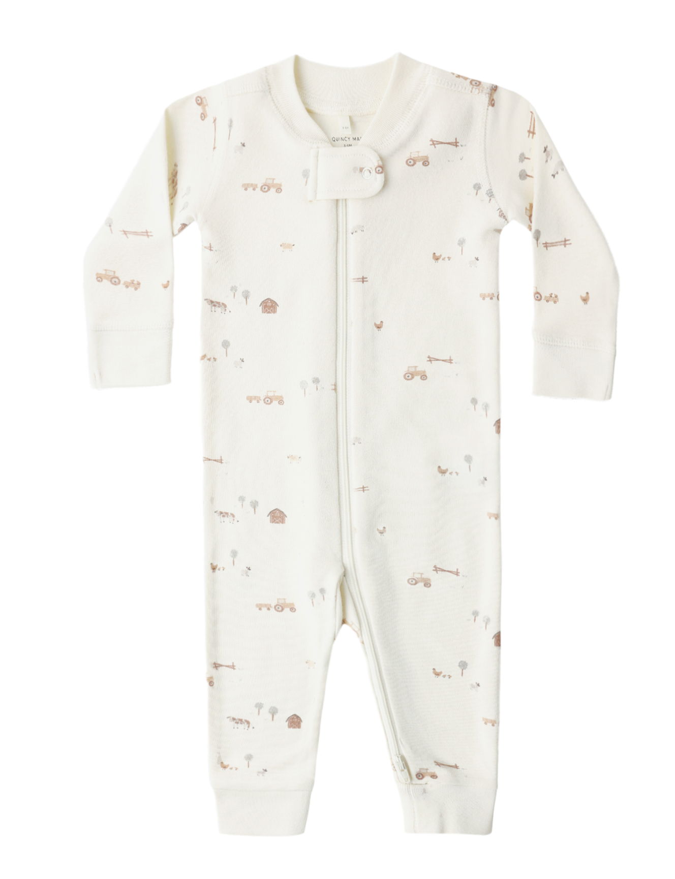 Snooze in style with our cozy ZIP LONGSLEEVE SLEEPER in a charming farm print. This playful one-piece features a convenient front zip for easy diaper changes and bathroom breaks, keeping your little one comfortable all night long. Soft, stretchy fabric moves with growing bodies, while the long sleeves provide extra warmth. Perfect for bedtime adventures on the farm!