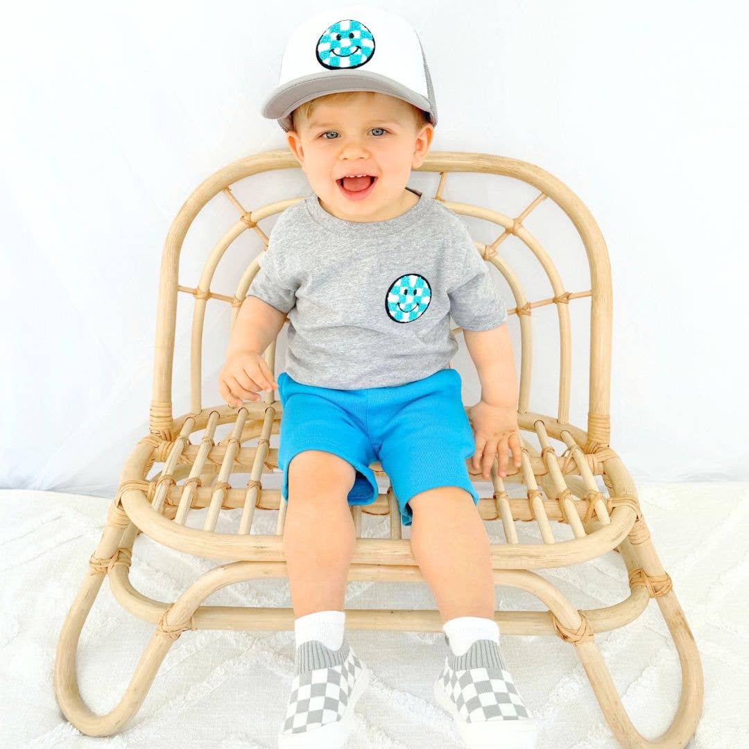 The Smiley Checker Patch Short Sleeve T-Shirt is a fun and handsome t-shirt for kids to welcome Spring!