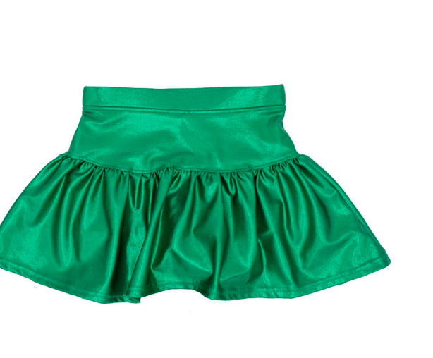 Slick Green Metallic Gathered Skort