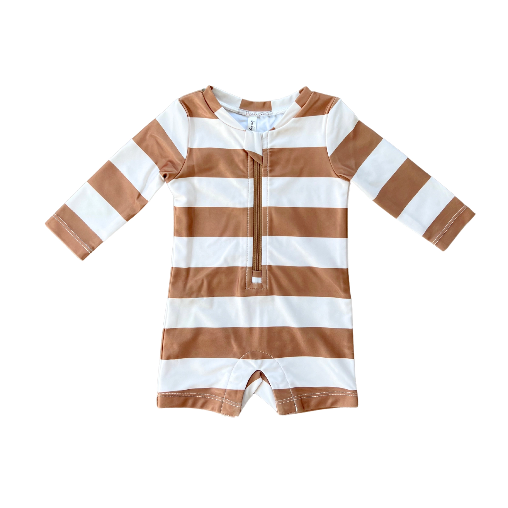 Baby One-Piece Rash Guard Swimsuit || Stripe in Toffee
