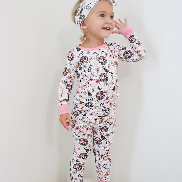 This Disco Birthday Girl Dream Set is a night-time groove essential for any trend-setting girl! She'll be the belle of the ball when she rocks out in this girls' pajama set featuring a top long sleeve and comfy bottom. Make sure the party never stops with a dream set for her special day!
