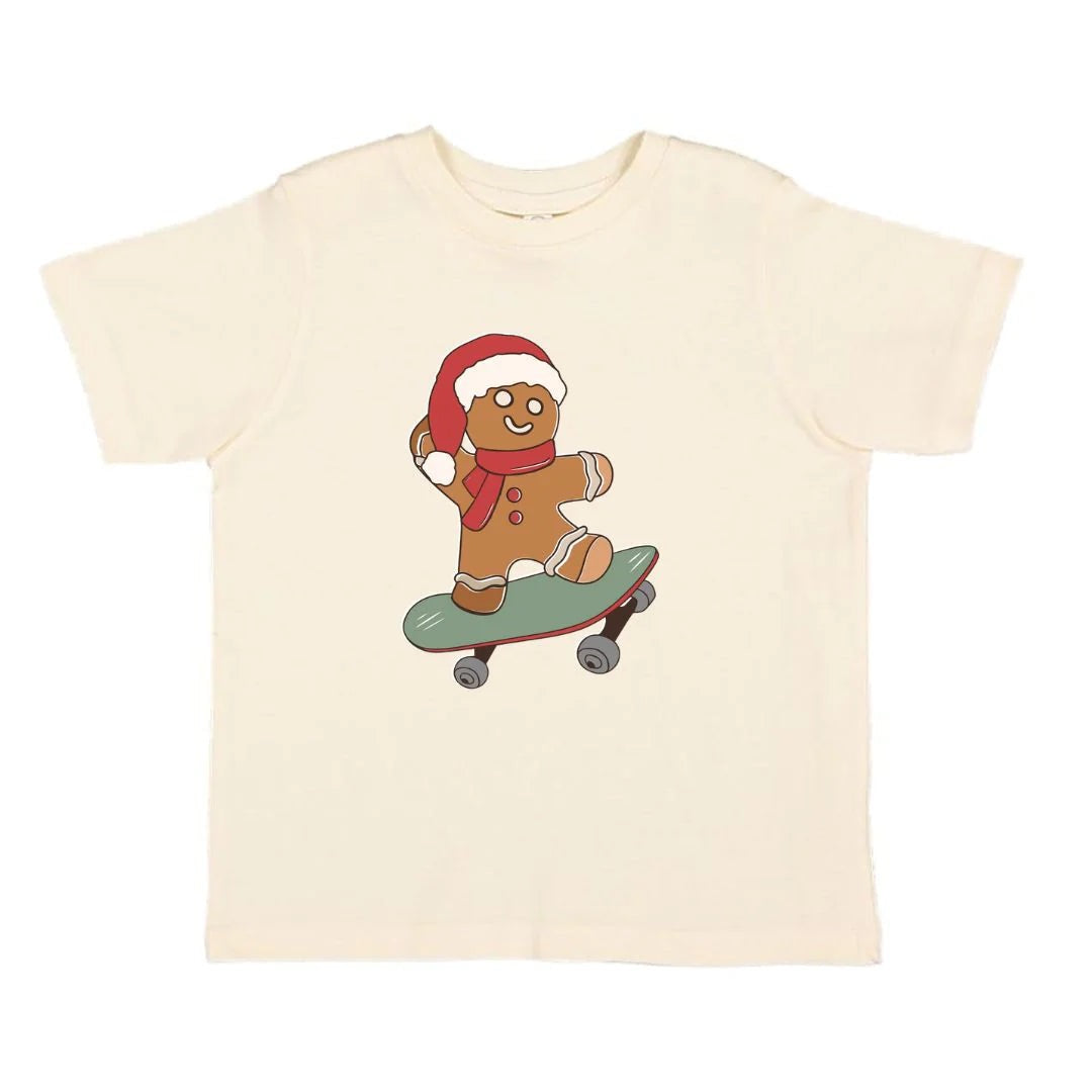The Gingerbread Skater Boy Christmas Short Sleeve T-Shirt is a fun and festive t-shirt for kids celebrating Christmas!