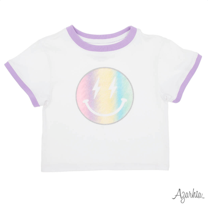 Glitter Pastel Rainbow Smiley Ringer Boxy T
