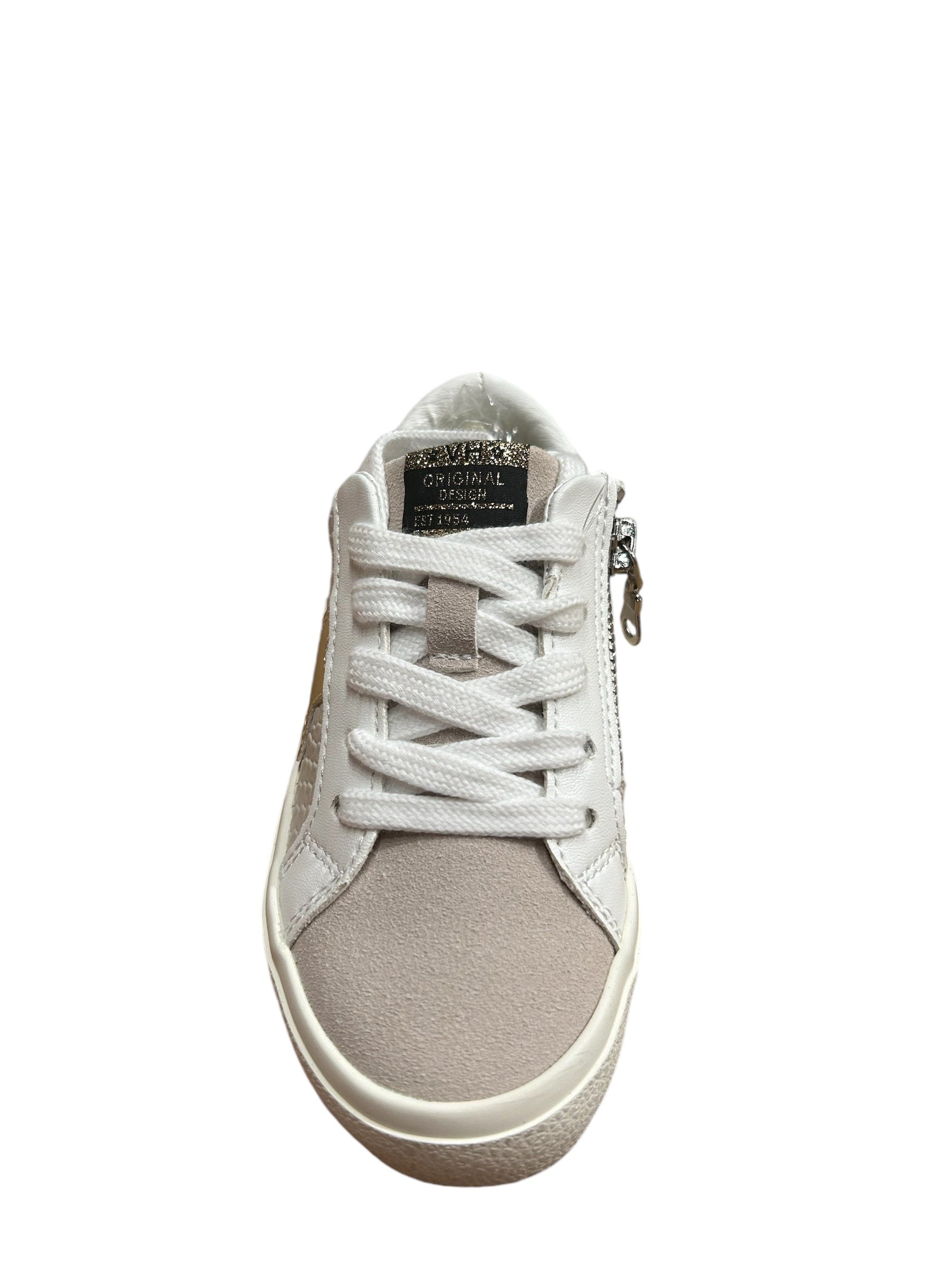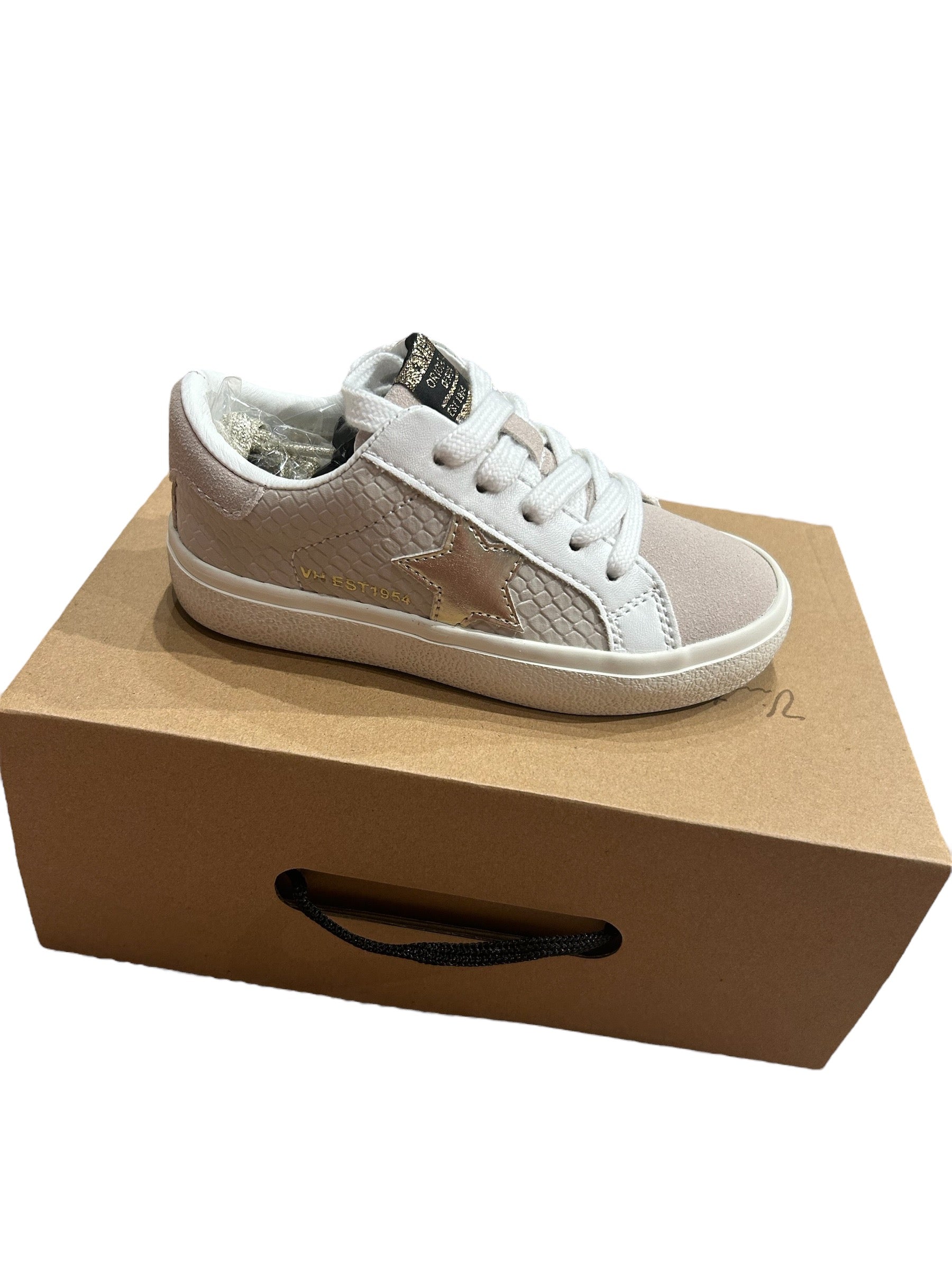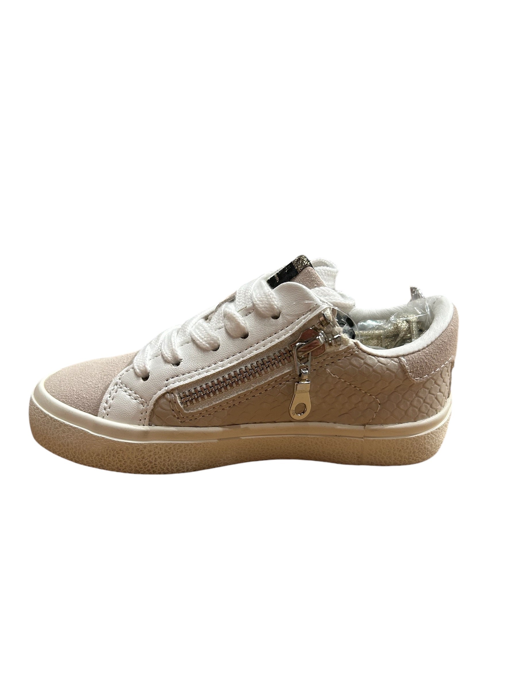 Step into style with our GOLD STAR WHITE LACED TAUPE CROCO LOW TOP youth shoe. With its stylish laced design and unique crocodile texture, your little one will be sure to stand out from the crowd. Comes with additional gold laces to interchange with the white for a new look. Perfect for any occasion, these shoes are a must-have for fashion-forward kids.
