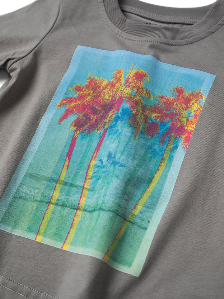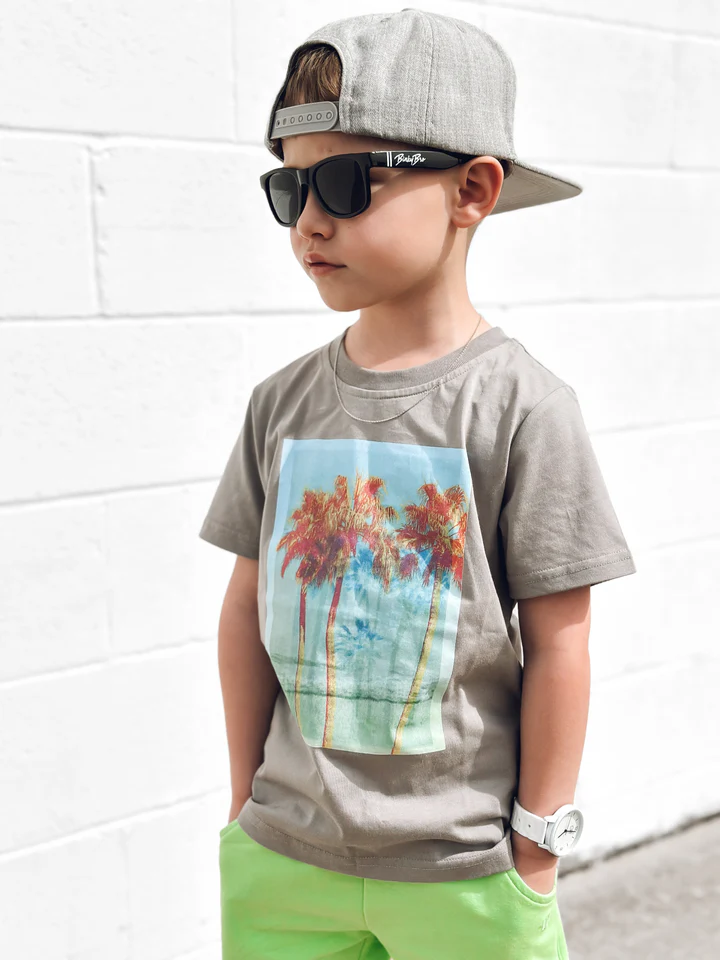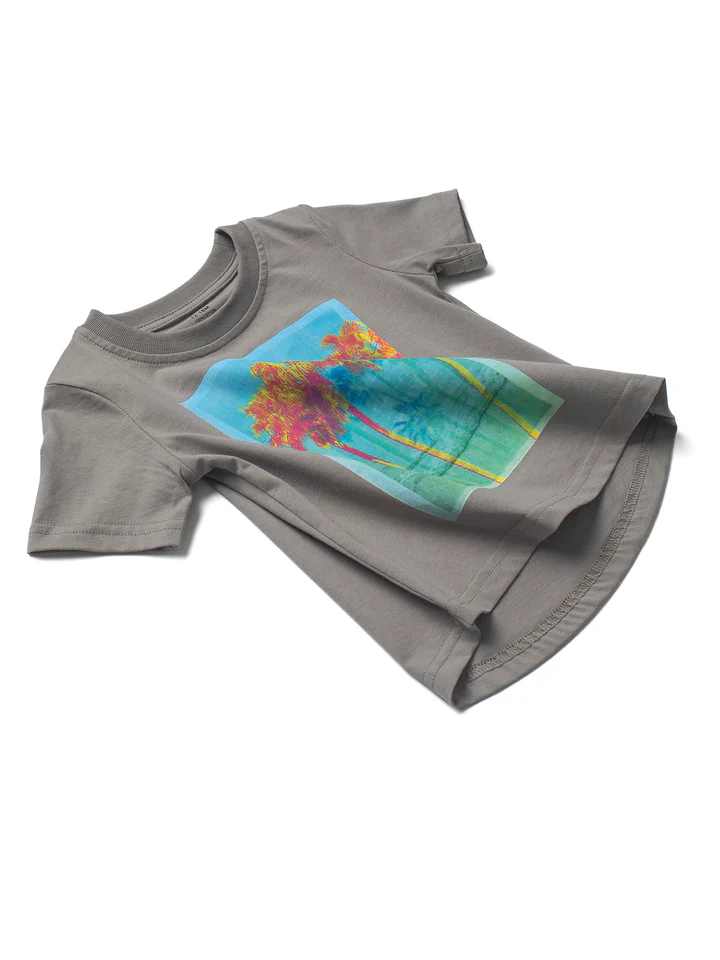 Bring in all the good summer energy with the Electric Collection! The Neon Palm Tee is the perfect balance of chill + bold, featuring a striking neon graphic design on a comfy grey tee. Pair it with any (or all!) of our Electric Collection Raw Edge Harem Shorts for maximum neon energy