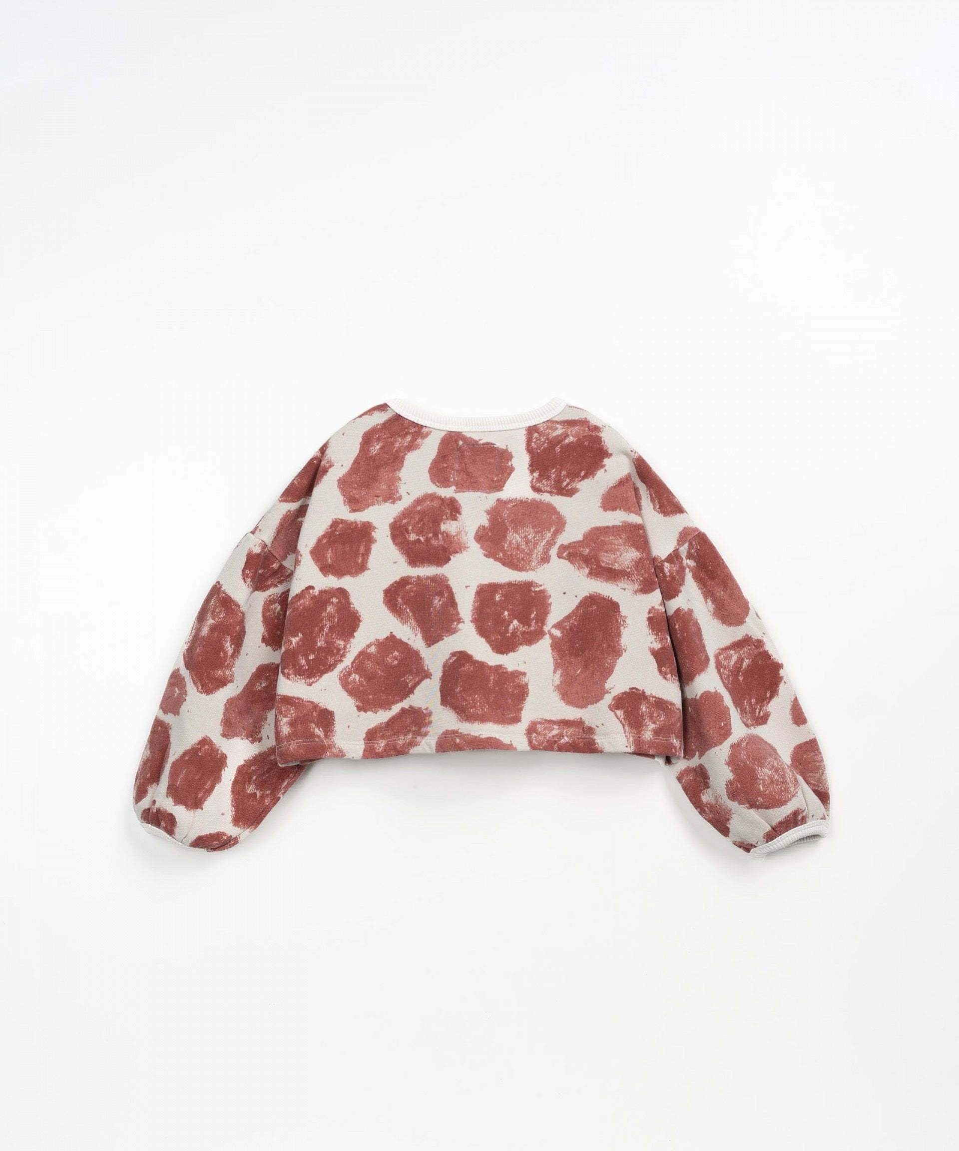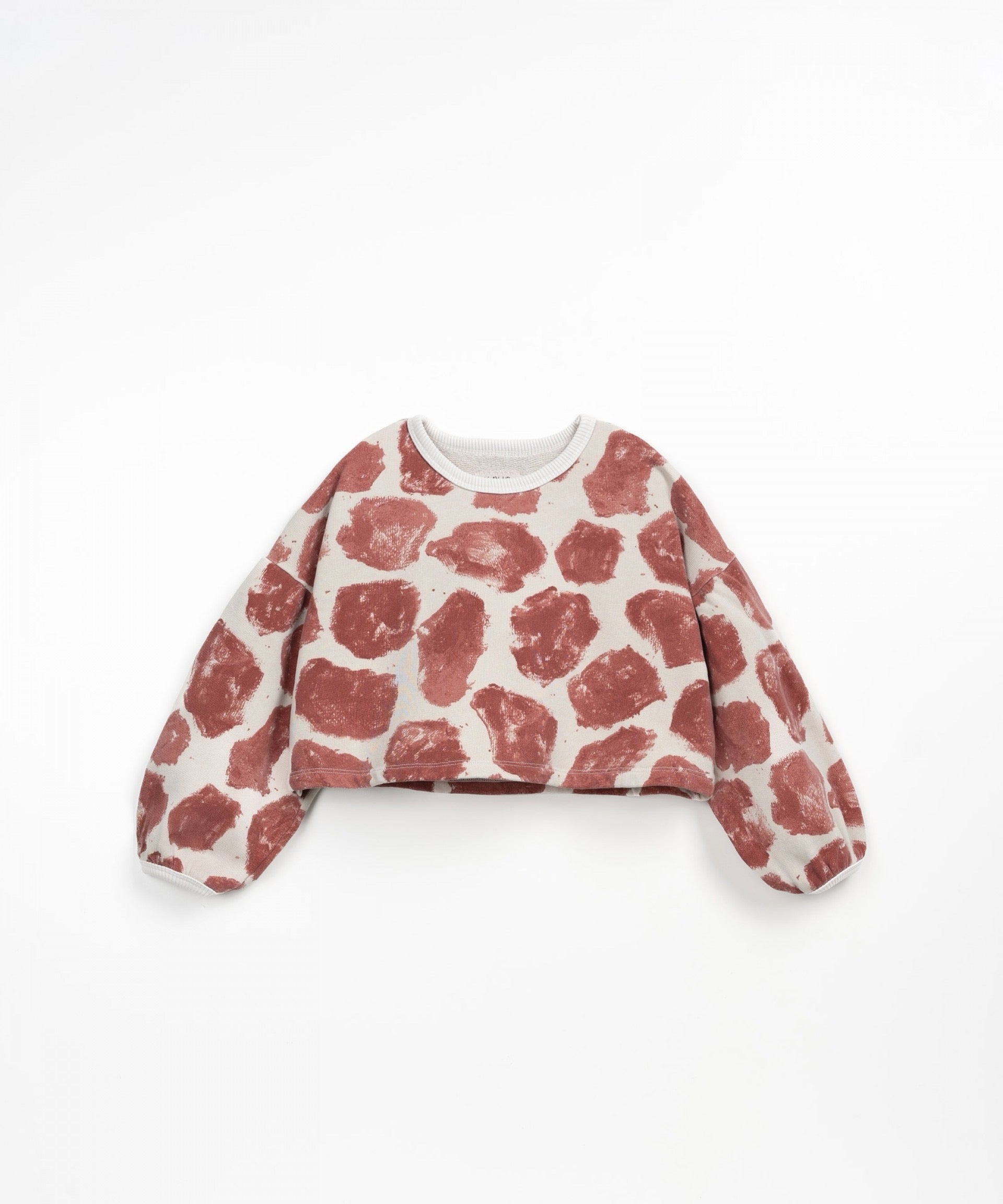 This jersey sweater is made from a mixture of organic cotton and cotton, So-So color. It's a short and oversize model, has a round neckline, long sleeves and our giraffe spots print .