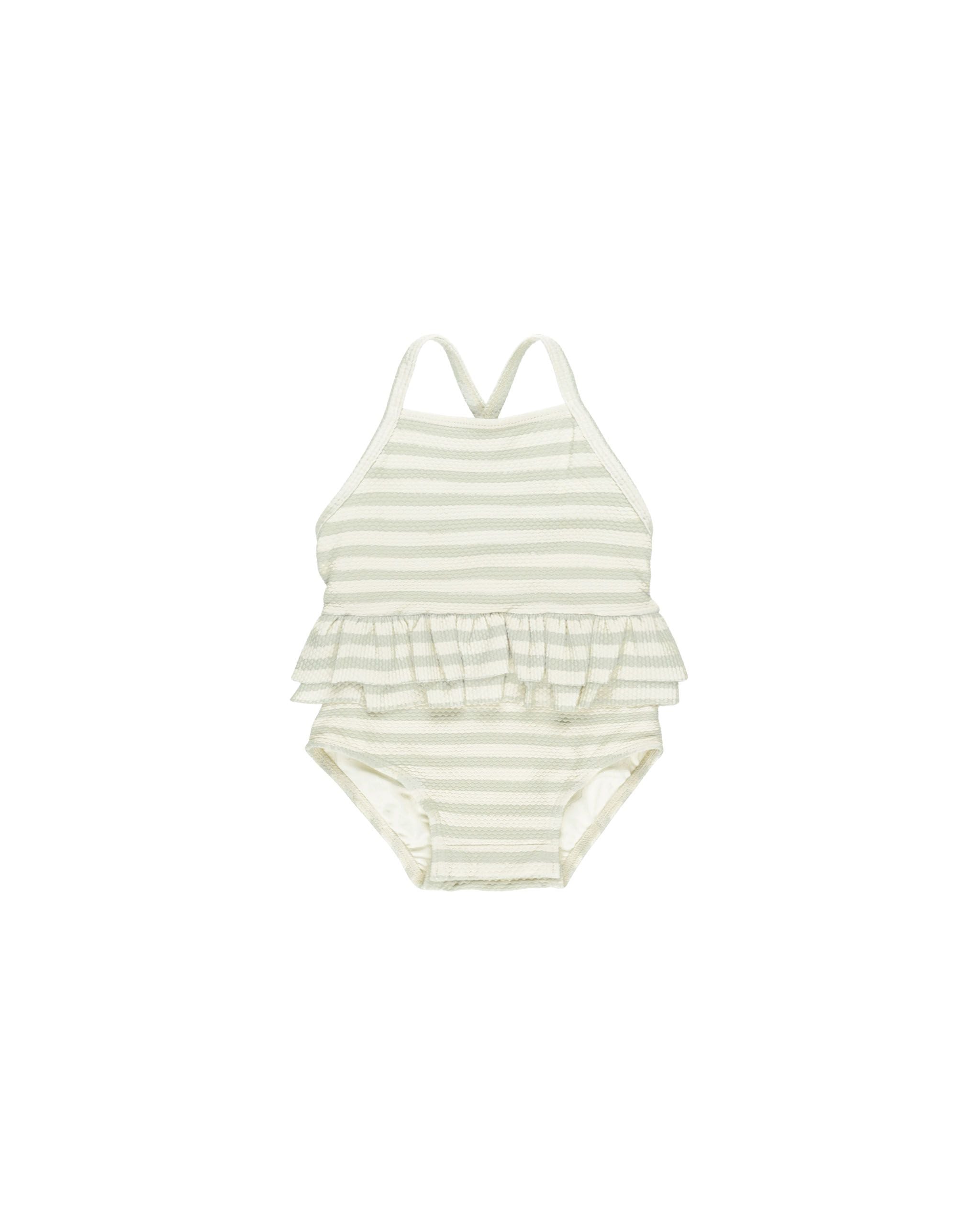 Ruffled One-Piece Swimsuit || Mint Stripe