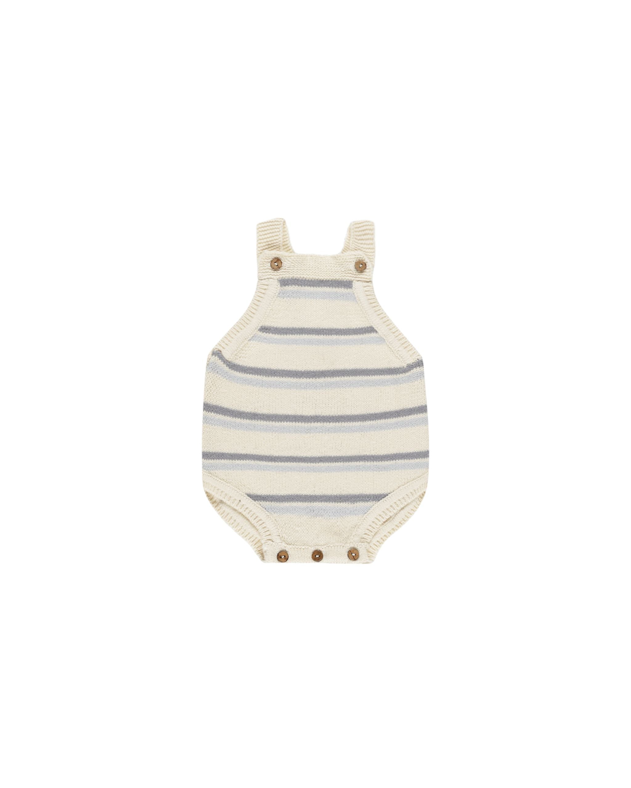 Our Tatum Romper is the perfect knit look for summer. Designed with button overall straps and bottom buttons for easy changes.